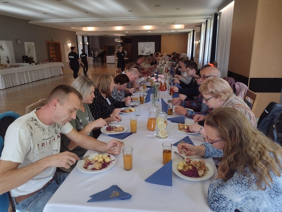 W dniach 17-18 październik 2024r. podopieczni naszej placówki uczestniczyli w plenerze artystyczno-sportowym dla osób niepełnosprawnych zorganizowanym przez Środowiskowy Dom Samopomocy w Sowczycach. Cała impreza odbyła się w Pałacu Pawłowice. Pierwszego dnia uczestnicy brali udział w zajęciach artystycznych, sportowych oraz tanecznych. Drugiego dnia uczestnicy pleneru rozegrali mecz piłki nożnej z zaproszonymi gośćmi w hali sportowej w Oleśnie. Rywalizacja była bardzo zacięta, jednak wszyscy walczyli do samego końca...Celem imprezy było promowanie aktywności osób niepełnosprawnych w różnych dziedzinach życia społecznego i zawodowego. Bardzo dziękujemy zaprzyjaźnionej placówce za zaproszenie.