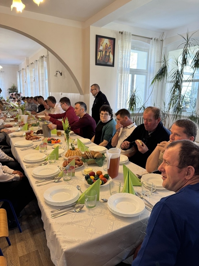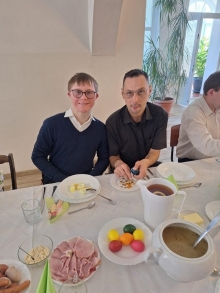Wspólne świętowanie to nie tylko posiłek – to także czas dzielenia się dobrem, życzliwością i nadzieją. Było nam miło, że swoją obecnością zaszczycili nas pracownicy Spółdzielni Socjalnej„Integracja” w Uszycach oraz Wójt Gminy Rudniki - Mariusz Stanek, który nie tylko dołączył do wspólnego śniadania, ale również obdarował naszych podopiecznych pięknym, wielkanocnym upominkiem. Ten gest pełen życzliwości i ciepła wywołał wiele uśmiechów.